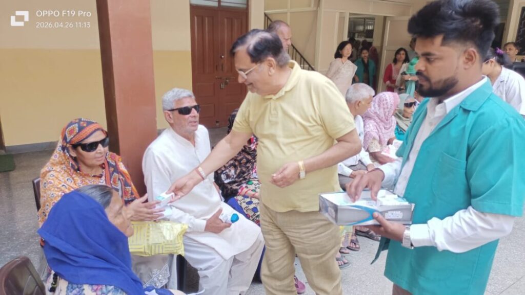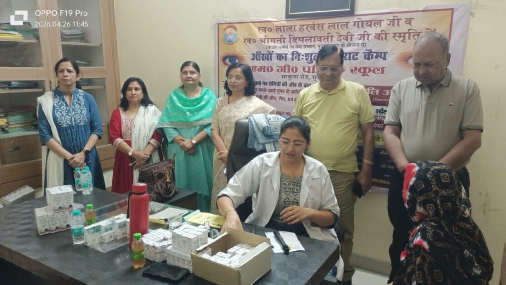 मुजफ्फरनगर। एमजी. पब्लिक स्कूल परिसर में रविवार 26, अपै्रल 2026 को निःशुल्क मासिक नेत्र रोग चिकित्सा शिविर का आयोजन किया गया। शिविर का शुभारंभ एम.जी. चैरिटेबल ट्रस्ट के अध्यक्ष सतीश चंद गोयल ने किया। इस अवसर पर एम.जी. पब्लिक स्कूल मैनेजमेंट कमेटी के उपाध्यक्ष विनीत सिंघल एवं अन्य अतिथि भी मौजूद रहे। प्रधानाचार्या श्रीमती मोनिका गर्ग द्वारा अतिथियों, चिकित्सक एवं चिकित्सा कर्मियों और उपचार परामर्श लेने आये नेत्र रोगियों का विद्यालय प्रांगण में स्वागत किया गया।