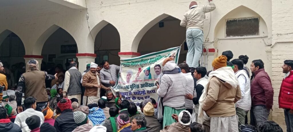 मुजफ्फरनगर एसएसपी कार्यालय का घेराव करते हुए भाकियू अराजनैतिक के हजारों कार्यकर्ताओं ने धरना दिया। यहां पर संगठन का बैनर लगाने को लेकर पुलिस और पदाधिकारियों के बीच गरमागरमी भी देखने को मिली। सिविल लाइन थाना प्रभारी इंस्पेक्टर आशुतोष कुमार भारी फोर्स के साथ वहां पर तैनात थे, उन्होंने एसएसपी कार्यालय पर लगाये गये बैनर को हटाने के लिए पदाधिकारियों से कहा और उतारने का प्रयास किया तो हंगामा खड़ा हो गया।