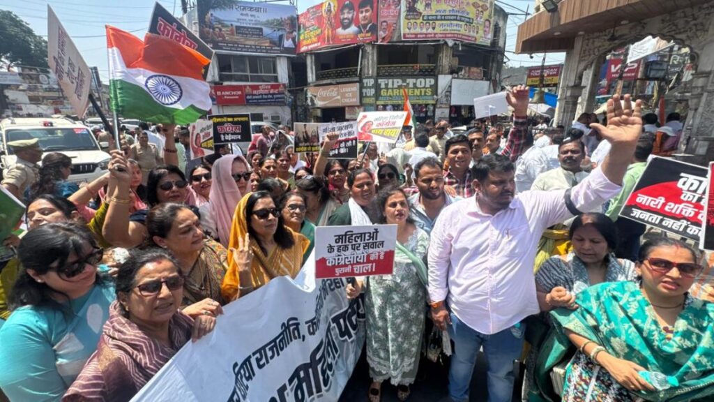 नगरपालिका अध्यक्ष मीनाक्षी स्वरूप ने कहा कि आज सभी ने इस जनआक्रोश महिला पदयात्रा में सहभागिता कर महिलाओं की आवाज को मजबूती देने का संकल्प लिया है। कहा कि महिला आरक्षण जैसे महत्वपूर्ण विषय पर हो रही राजनीति के खिलाफ यह पदयात्रा महिलाओं के अधिकार, सम्मान और सशक्तिकरण की दिशा में एक मजबूत पहल है। समाज में महिलाओं की भागीदारी और नेतृत्व को बढ़ावा देना ही वास्तविक विकास का आधार बताया गया। उन्होंने कहा कि ‘नारी शक्ति वंदन अधिनियम’ महिलाओं के अधिकारों को सशक्त बनाने की दिशा में एक सकारात्मक एवं महत्वपूर्ण कदम था, जिसे विपक्षी दलों की महिला विरोधी मानसिकता के कारण स्वीकार नहीं किया गया।