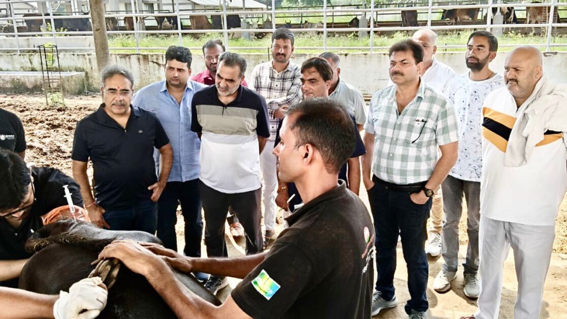 मुजफ्फरनगर। जनपद के गांव तुगलकपुर कमहेड़ा स्थित गौ अभयारण्य में स्वस्थ गौ माता में भ्रूण प्रत्यारोपित (एर्म्ब्याे ट्रांसप्लांट) कर कृत्रिम गर्भाधान करा कर उत्तम किस्म के गौ वंश प्राप्त करने के लिए केंद्र सरकार द्वारा संचालित कार्यक्रम चलाया जा रहा है, जिसको आगे बढ़ाते हुए बुधवार को लगभग बीस गौ माता में भूर्ण प्रत्यारोपित किया गया, जिसमें पूर्व केंद्रीय राज्य मंत्री डॉ संजीव बालियान भी उपस्थित रहें।