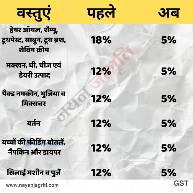 टूथपाउडर, फीडिंग बॉटल, रसोई के बर्तन, साइकिल, कंघी, बांस का फर्नीचर, छाते आदि पर टैक्स 12% से घटाकर 5% किया गया।