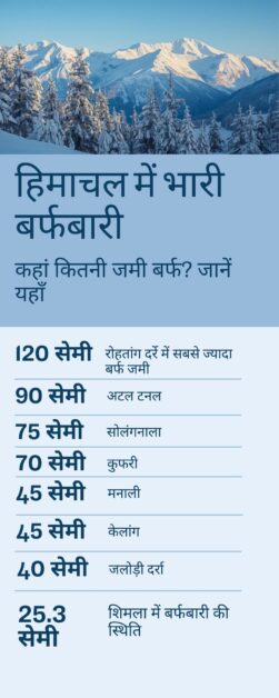बर्फबारी और बारिश के बाद तापमान में तेज गिरावट दर्ज की गई है। शिमला, मनाली और डलहौजी में न्यूनतम तापमान शून्य के करीब पहुंच गया। कांगड़ा, कुल्लू और शिमला एयरपोर्ट पर उड़ानें रद्द रहीं। कालका-शिमला रेल ट्रैक पर पेड़ गिरने से ट्रेनें कई घंटे बाधित रहीं।