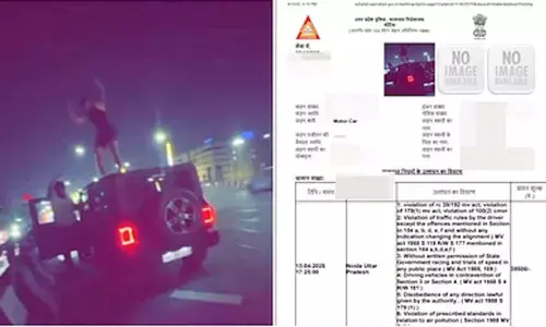 नोएडा । वीडियो के वायरल होते ही सोशल मीडिया पर लोगों ने इस हरकत की कड़ी आलोचना की और टन्न्ैफिक पुलिस से सख्त कार्रवाई की मांग की। सोशल मीडिया पर एक हैरान कर देने वाला वीडियो वायरल हो रहा है, जिसमें एक युवक एलिवेटेड रोड पर चलती थार गाड़ी की छत पर तेज म्यूजिक बजाकर डांस करता नजर आ रहा है। यह वीडियो नोएडा के सेक्टर-33 स्थित एलिवेटेड रोड का बताया जा रहा है। वीडियो में साफ देखा जा सकता है कि युवक थार की छत पर चढ़ा हुआ है और फिल्मी गानों पर बेधड़क डांस कर रहा है। इस दौरान पीछे से गुजर रहे अन्य वाहन भी इस दृश्य को देखकर धीमे हो जाते हैं, जिससे टन्न्ैफिक की रफ्तार भी प्रभावित होती है। यह स्टंट न सिर्फ खुद के लिए खतरनाक था, बल्कि सड़क पर चल रहे अन्य लोगों की जान को भी खतरे में डाल सकता था। वीडियो के वायरल होते ही सोशल मीडिया पर लोगों ने इस हरकत की कड़ी आलोचना की और टन्न्ैफिक पुलिस से सख्त कार्रवाई की मांग की। सोशल मीडिया पर की गई शिकायत को गंभीरता से लेते हुए नोएडा टन्न्ैफिक पुलिस ने इस मामले का संज्ञान लिया और वाहन की पहचान कर ली। पुलिस ने युवक और वाहन मालिक के खिलाफ मोटर व्हीकल एक्ट के तहत कार्रवाई करते हुए कुल 38,500 रुपये का चालान काटा है। पुलिस टन्न्ैफिक पुलिस के अधिकारियों ने बताया कि इस तरह की लापरवाही और स्टंट जानलेवा हो सकता है, इसलिए इस तरह स्टंट करने से बचें।