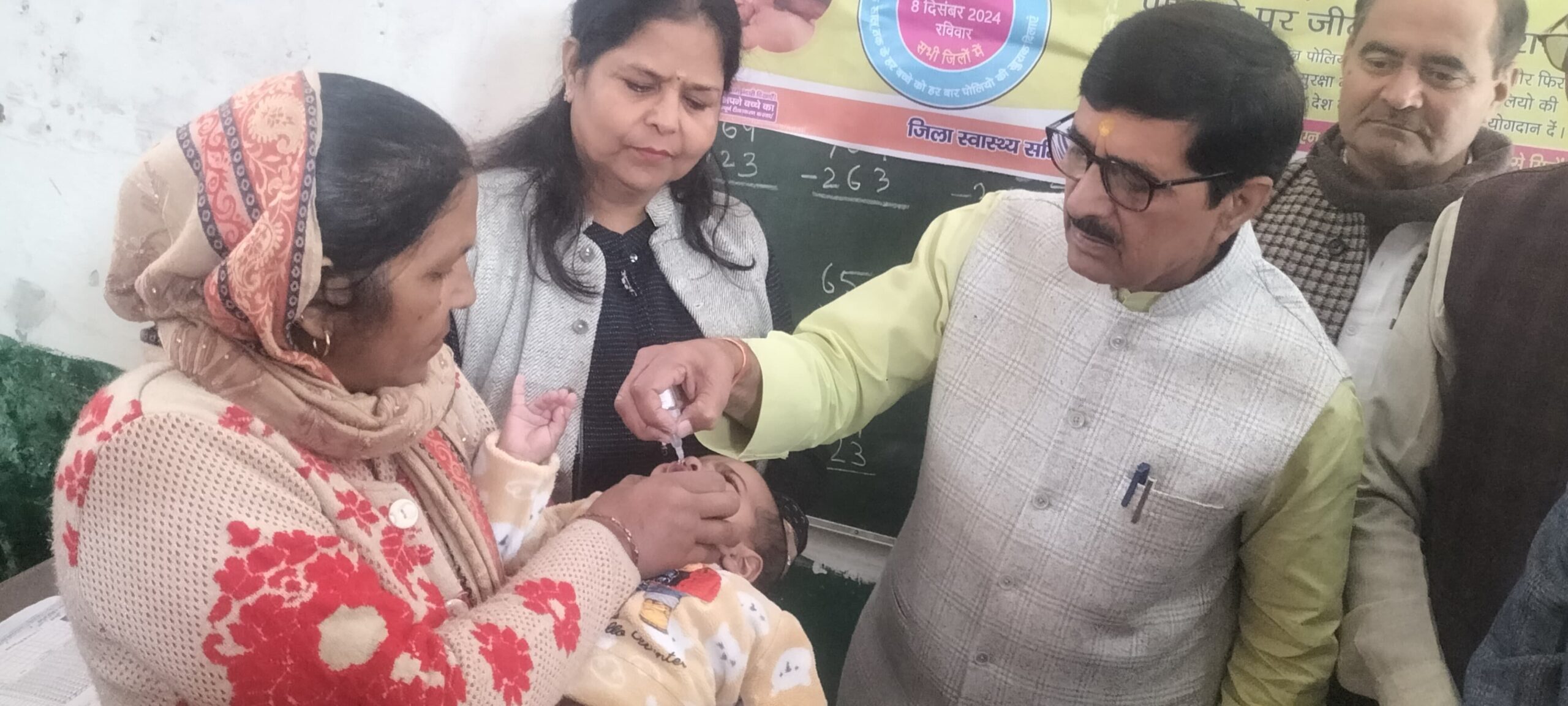 मुख्य चिकित्सा अधिकारी डॉ. शैलेश जैन ने जानकारी देते हुए बताया कि जनपद में आज से पल्स पोलियो अभियान का शुभारंभ किया गया है, जिसके अंतर्गत 5 लाख 30 हजार 421 बच्चों को पोलियो की खुराक पिलाने का लक्ष्य रखा गया है। जिला प्रतिरक्षण अधिकारी डॉ. विपिन कुमार ने बताया कि जनपद में रविवार 8 दिसंबर को पल्स पोलियो अभियान के अंतर्गत बूथ पर दवाई पिलाई जा रही है, 9 दिसंबर से लेकर 13 दिसंबर तक टीमें घर-घर जाकर बच्चों को पोलियो की खुराक पिलाएंगी तथा जो बच्चे छूट जाएंगे उनके लिए 16 दिसंबर को पुनः टीमें घर जाकर बच्चों को पोलियो की खुराक पिलाएंगे। इस अवसर पर सामुदायिक स्वास्थ्य केंद्र मखियाली के चिकित्सा अधीक्षक डॉ. अनु चौधरी, सहायक जिला प्रतिरक्षण अधिकारी प्रदीप शर्मा, डब्ल्यूएचओ एसआरटीएल डॉ. अजय पंवार, यूनिसेफ डीएमसी सुश्री तरन्नुम, वीसीसीएम इमरान, स्टेनो जिला पंचायत अध्यक्ष अक्षय शर्मा, ओंकार शर्मा, रामकुमार एवं रविंद्र आदि उपस्थित रहे।