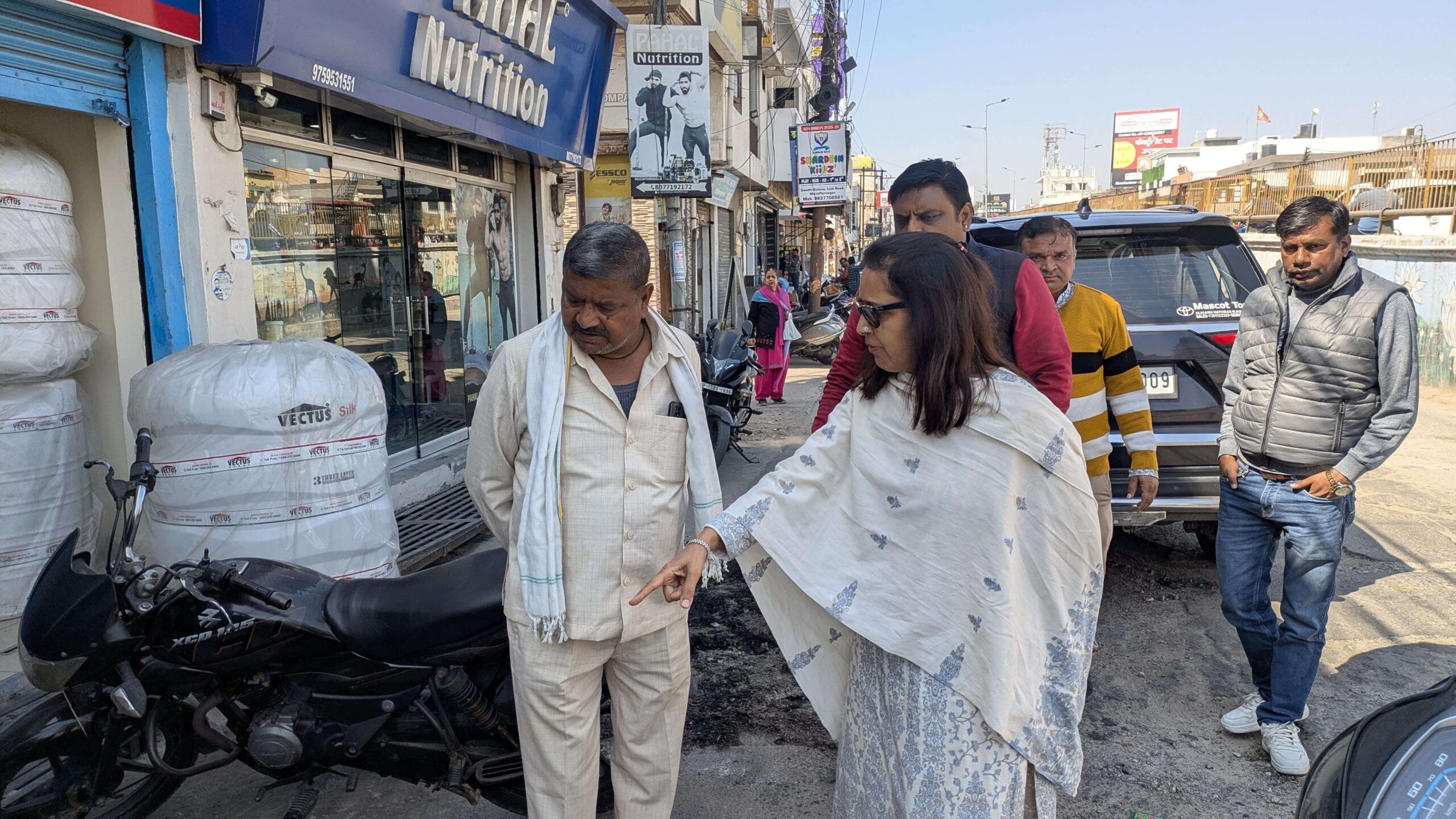 नगरपालिका परिषद् की चेयरपर्सन मीनाक्षी स्वरूप शहरी क्षेत्र में सफाई, विकास और जलापूर्ति सहित अन्य कार्यों को सुचारू रखने के लिए लगातार निरीक्षण कर रही हैं। उनके द्वारा मंगलवार को नई मंडी से शहर के शिव चौक तक औचक निरीक्षण करते हए सफाई व्यवस्था का जायजा लिया गया। सवेरे वो मंडी क्षेत्र में पहुंची और साफ सफाई को लेकर सफाई नायक को संवेदनशील होकर जिम्मेदारी के साथ कार्य करने के निर्देश दिये। इसके बाद मंगलवार को शहरी क्षेत्र में साप्ताहिक बंदी होने के कारण नाला गैंग के सहारे नाला-नाली सफाई अभियान को परखने के लिए भी चेयरपर्सन मीनाक्षी स्वरूप ने औचक निरीक्षण किया। उन्होंने बताया कि आज सवेरे वार्ड संख्या 36, 47 और 49 में सफाई कार्यों का जायजा लिया गया। टिकैत चौक, जानसठ रोड, नई मंडी के बाद शिव चौक से हनुमान चौक तक भगत सिंह रोड पर नाला गैंग के सहारे नाली व नाला सफाई कार्य को परखा। दुकानदारों और व्यापारियों से दुकानों के बाहर अतिक्रमण न करने और नाले-नालियों पर सीसी स्लैब हटवाकर लोहे के खुलने वाले जाल लगवाने के लिए भी कहा गया, ताकि सफाई कार्य और जल निकासी में कोई बाधा उत्पन्न न हो।