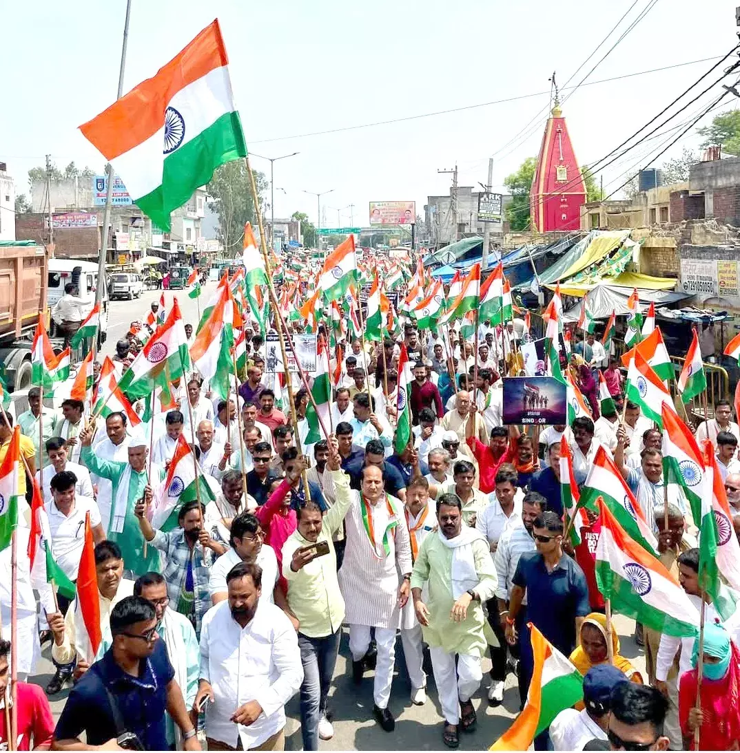 हाथो मे तिरंगा लिये भाजपा व हिन्दू संगठनो के कार्यकर्ताओ ने पूर्व कैबिनेट मंत्री सुरेश राणा के नेतृत्व मे नगर मे तिरंगा यात्रा निकाली। यात्रा का शुभारम्भ मन्दिर दयाल आश्रम से हुआ इस अवसर पर पूर्व मंत्री सुरेश राणा ने कहा पहलगाम मे निर्दोष हिन्दुओ की आतंकवादियो द्वारा की गई हत्याओ को लेकर मोदी जी के नेतृत्व मे भारतीय सेना ने पाकिस्तान को जो करारा जवाब दिया उसे पाकिस्तान लम्बे समय याद रखेगा। मोदी जी ने पानी, व्यापार आदि बातचीत बंद कर पाकिस्तान को जहॉ कडा संदेश दिया वही भारतीय सेना ने पाकिस्तान के एयरबेस व आतंकवादियो के अड्डे पर जो भीषण हमला किया।