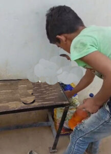 ग्रामीणों द्वारा बनाए गए वीडियो में साफ देखा जा सकता है कि बच्चे प्लास्टिक की बोतलों में पेट्रोल भरकर राहगीरों और वाहन चालकों को खुलेआम बेच रहे हैं।