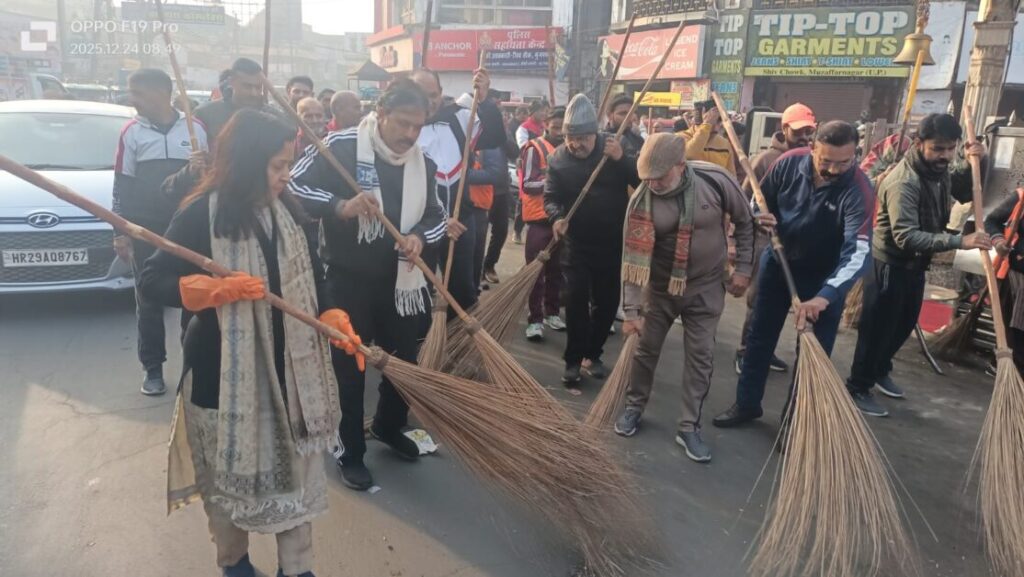 भारतीय जनता पार्टी के मीडिया प्रभारी पवन अरोरा ने जानकारी देते हुए बताया कि पूर्व प्रधानमंत्री, भारत रत्न अटल बिहारी वाजपेई के जन्मदिवस के उपलक्ष्य में भारतीय जनता पार्टी द्वारा आयोजित कार्यक्रमों की श्रृंखला में नगर पालिका परिषद मुजफ्फरनगर ने शहर के प्रमुख मीनाक्षी चौक का नाम ‘अटल चौक रखने का प्रस्ताव किया है। इसी अवसर पर स्वच्छता के प्रति जन-जागरूकता फैलाने के उद्देश्य से अटल चौक से शिव मूर्ति तक स्वच्छता श्रमदान अभियान चलाया गया। नगरपालिका अध्यक्ष मीनाक्षी स्वरूप सहित सभी लोगों ने इसमें प्रतिभाग करते हुए अपने हाथों से सड़क पर अटल चौक से शिव चौक तक झाड़ू लगाकर साफ सफाई की।