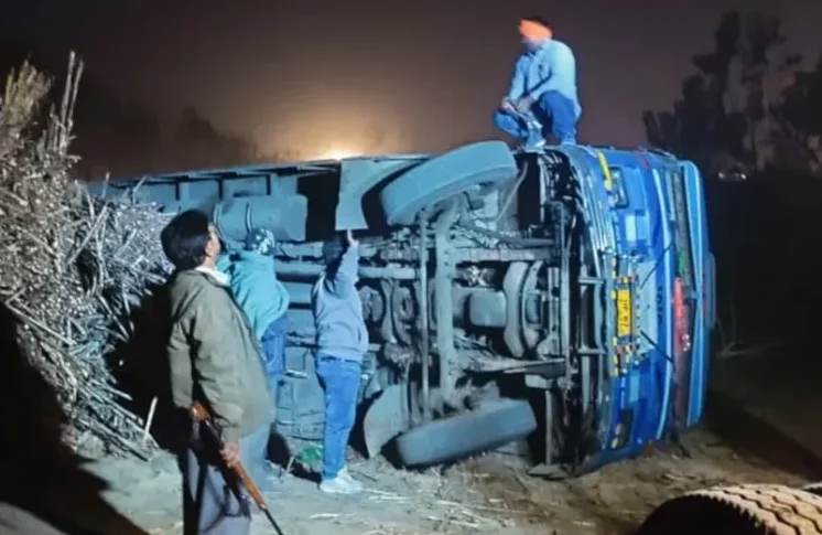 कस्बा मीरापुर के मोहल्ला दक्षिणी मुश्तर्क निवासी चालक अरशद पुत्र युनुस गुरुवार की शाम मुजफ्फरनगर से बस लेकर मवाना जा रहा था। बस में करीब 40 यात्री सवार थे। जब बस टिकौला मिल के निकट पहंची तो चालक ने सामने से आ रहे ओवरलोड व ओवर हाइट गन्ने से भरे अनियंत्रित ट्रक को देखकर बस रोक ली लेकिन जैसे ही ट्रक बस के पास आया तो वह अनियंत्रित होकर बस पर पलट गया। इससे बस सड़क किनारे खेत में पलट गई तथा बस में आग लग गई। आसपास के लोगों ने दौड़कर मिट्टी से आग बुझाई तथा शीशे तोड़कर यात्रियों को बाहर निकाला। दुर्घटना के बाद ट्रक चालक मौके से भाग गया।