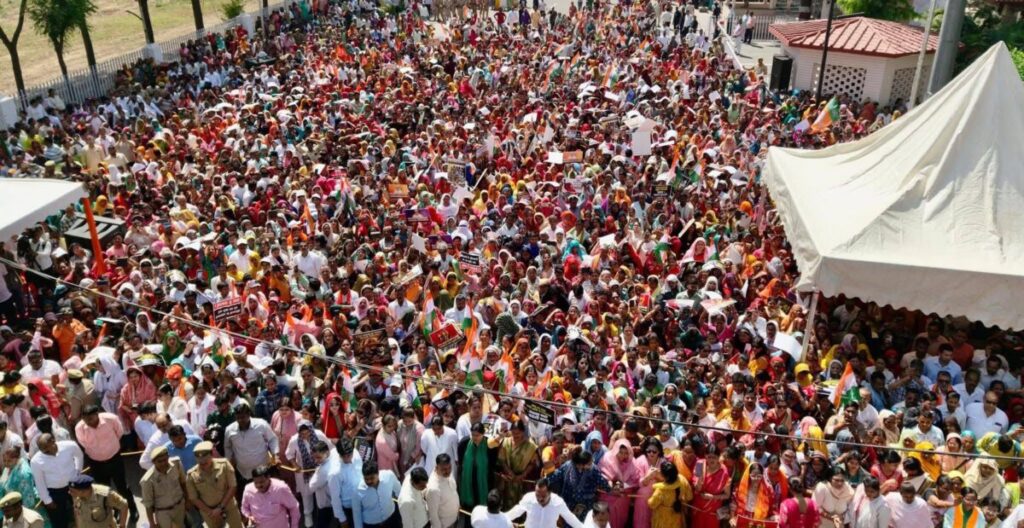 उत्तर प्रदेश की राजधानी लखनऊ की सड़कों पर महिलाओं का सैलाब लेकर उतरे सीएम योगी ने नारी अधिकारों के समर्थन और विपक्ष के विरोध के खिलाफ व्यापक पदयात्रा की गई। मंत्री अनिल कुमार ने कहा कि यह प्रदर्शन केवल एनडीए का कोई राजनीतिक शक्ति प्रदर्शन नहीं, बल्कि महिलाओं के अधिकारों और प्रतिनिधित्व की मांग को लेकर उभरती जागरूकता का प्रतीक बनकर समाने आया है।