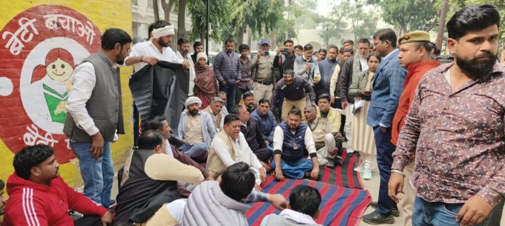सोमवार को मांगेराम त्यागी ने पीड़ित विकास त्यागी और समाज के अन्य लोगों के साथ कलेक्ट्रेट पहंुचकर डीएम कार्यालय के समक्ष धरना दिया। इस प्रदर्शन के दौरान सिटी मजिस्ट्रेट पंकज प्रकाश राठौर को ज्ञापन सौंपते हुए चेतावनी दी कि यदि समस्या का शीघ्र समाधान नहीं हुआ तो 25 फरवरी को भारतीय जनता पार्टी के जिला मुख्यालय पर बड़ी संख्या में पहुंचकर हवन किया जाएगा।