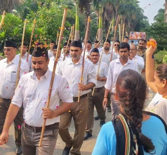 आरएसएस शताब्दी वर्ष पर पूर्व मंत्री डॉ. संजीव बालियान ने किया पथ-संचलन, लोगों ने स्वयंसेवकों पर बरसाये फूल