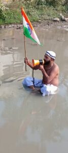 उप निरीक्षक ने हाथ में तिरंगा और लाउडस्पीकर के साथ विजय हिंदुस्तानी को जल समाधि लेने से रोका और उन्हें पानी से बाहर खींच लिया।