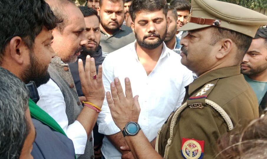 आत्मदाह प्रकरण में आरोपियों की गिरफ्तारी न होने पर छात्रों और भाकियू अराजनैतिक के नेताओं ने किया प्रदर्शन